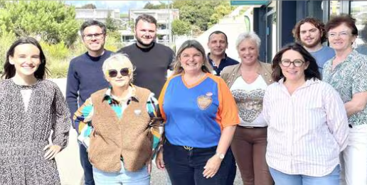 Corinne le Léannec (au premier rang, 2e à gauche) organise la balade à moto au profit de la Ligue contre le cancer, et elle est soutenue par la gérante Céline Bihoues (au centre, au premier rang) et son équipe. Crédits photos : Ouest-France